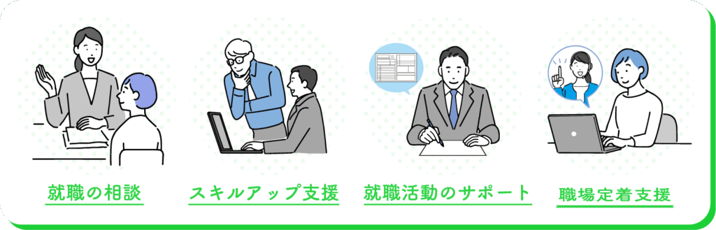 • 専門的なサポートが受けられる:専門スタッフから就職活動や職場定着に向けた、悩みに応じた丁寧なサポートが受けられます。
