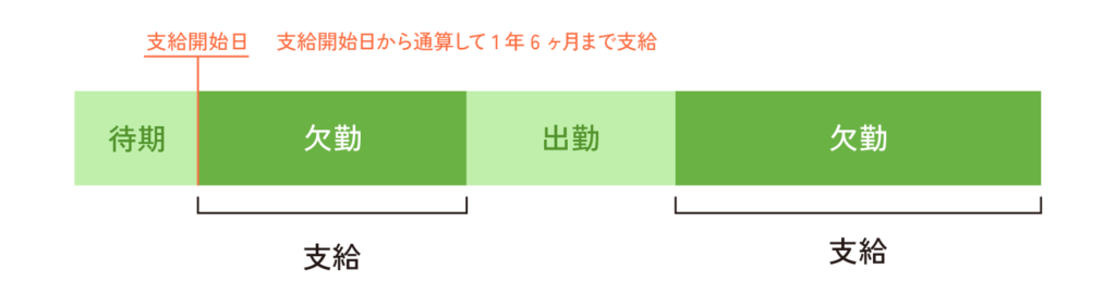 傷病手当金の支給期間は、支給開始日(=待期期間の3日を満了した翌日)から起算して、最長で1年6ヶ月間と定められています。この期間は、同じ病気やケガに対する通算の支給期間であり、途中で回復・復職してもリセットされることはありません。