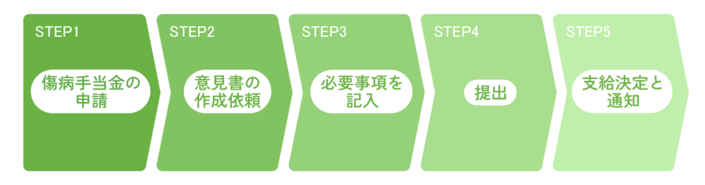 傷病手当金の申請手続きは、以下の流れで行います。